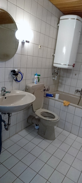 Es gibt ein separates WC und einen Kellerraum. Die Wohnung wird mit Fernwärme beheizt.